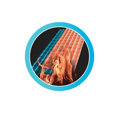 According to the UL94-2013 standard test insulated roof panels are proven to have a flame rating that is not less than VO. Which means, our PVC/ASA roofing sheets are non-flammable and the material performs efficiently in a fire on the exterior of the property.
